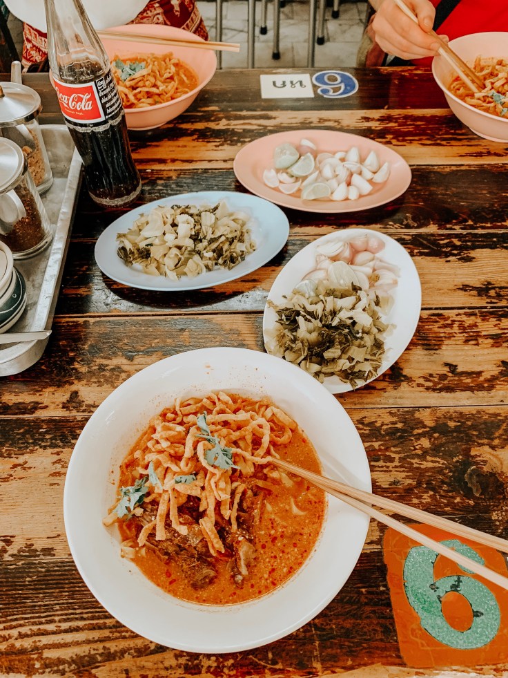 The next day, me and two of the girls I met in Bangkok – Morgan and Laura – went to get the best recommended Khao Soi in Chiang Mai. Khao Soi is the regional dish in the north of Thailand and is a really lovely noodle soup which I am very keen to try at home. Anyway, this restaurant was packed with local Thais which was precisely what we’d hoped for, and the Khao soi was truly fantastic, and only 50 Bhat (£1.25)