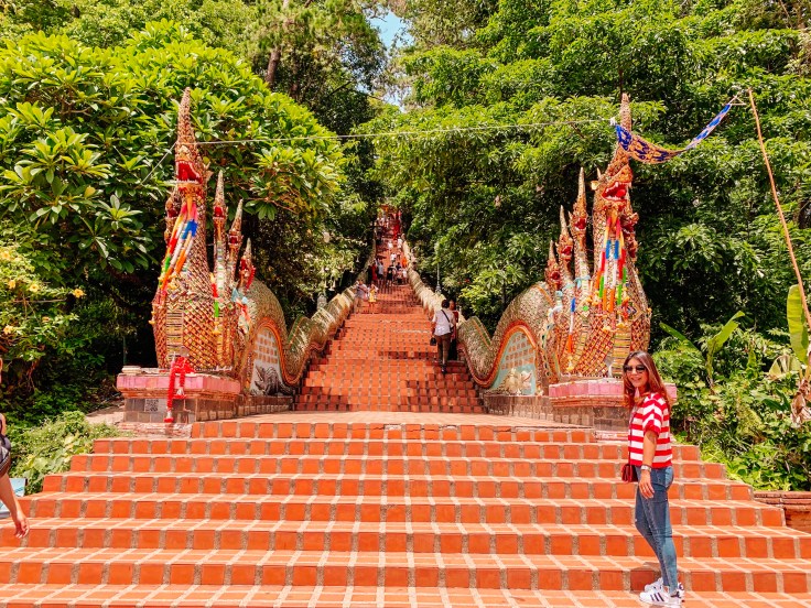 Next we visited Chiang Mai’s main temple: Wat Phrathat Doi Suthep. I’ll be honest and say that to me, on temple in Thailand is much like another, however, the reason for visiting this temple was not so much for the temple itself but for its location and stunning views, plus it’s really quite challenging staircase