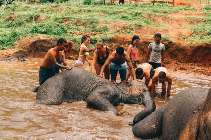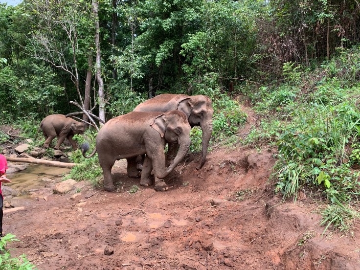 We did a bit of banana feeding to the elephants (and one very sweet dog), before following them on a 3 hour trek into the jungle. Then we (the humans) returned for a lunch before stripping off for a mud bath.